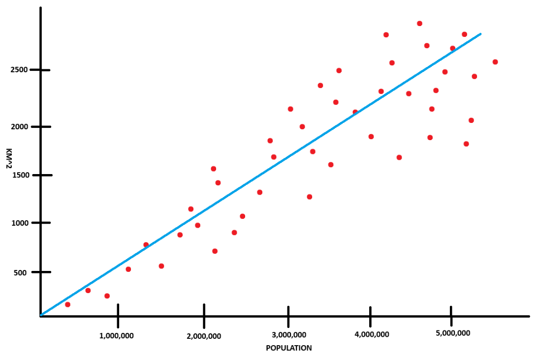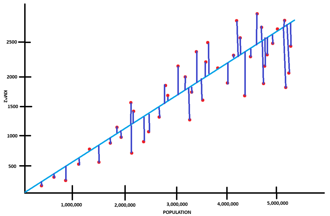 Going back to my linear-regression post, we were using this graph to predict the area of a city based on its population.