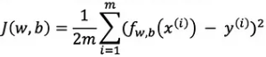 Explaining this in a little bit more detail, f(xi) is the short-hand for fw, b(x). In the summation symbol (∑), the m above indicates the ending index, while i = 1 below specifies the starting point. Another thing to note is that instead of calculating the sum and then dividing by the total number of items, the formula uses 1/2m, however dividing by n after calculating the sum is equivalent mathematically.